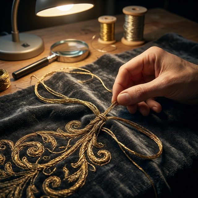Before the final fabric is touched, the design is shaped on "Toile" (raw cotton). This step ensures the precision of lines and the fluidity of the garment on the human form.
