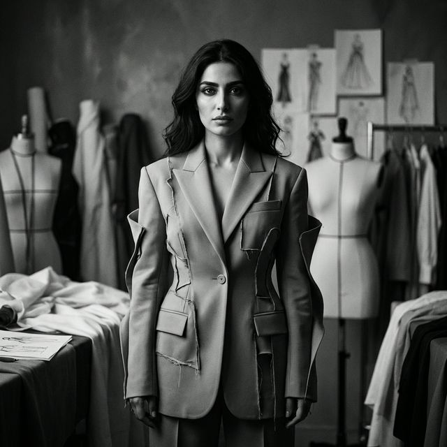 Setareh pushes the boundaries of innovative silhouette and form. She is the creative force behind the bold, contemporary cuts that define the brand's identity, merging classical elegance with timeless avant-garde.
