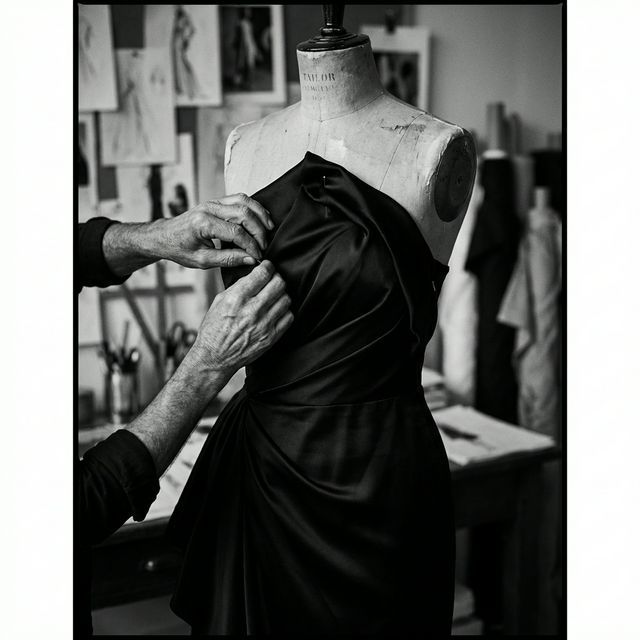Moulage—or draping directly on the form—is a visceral, tactile dialogue between the designer and the material. The gravity-response of rich silks and heavy velvets is studied, manipulated, and pinned to forge organic volumes.